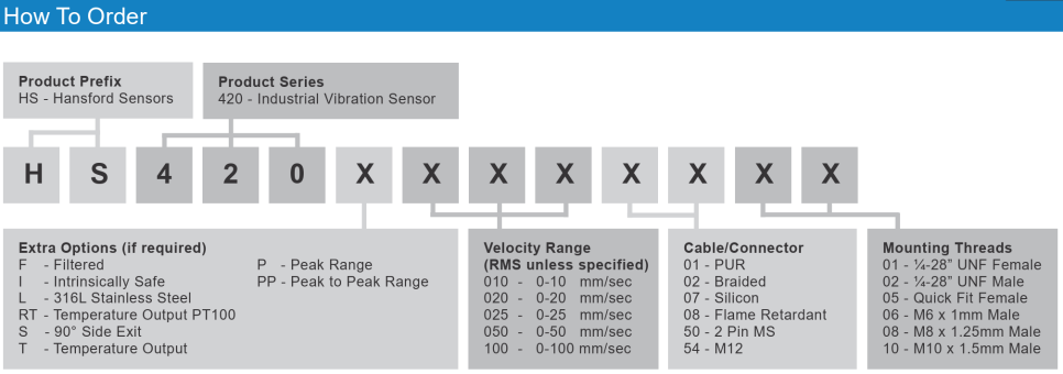 Hansford Sensors의 HS-420 가속도계는 이러한 산업 현장의 요구에 부응하기 위해 설계된 고성능 진동 센서로, 4-20mA 아날로그 출력 방식을 채택하여 PLC나 DCS 시스템과의 손쉬운 연동이 가능합니다. 또한 다양한 설치 환경에 대응할 수 있도록 사용자 맞춤형 사양 구성을 지원하며, 팬, 모터, 펌프 등 다양한 회전체 장비의 상태 감시를 위한 이상적인 솔루션을 제공합니다.